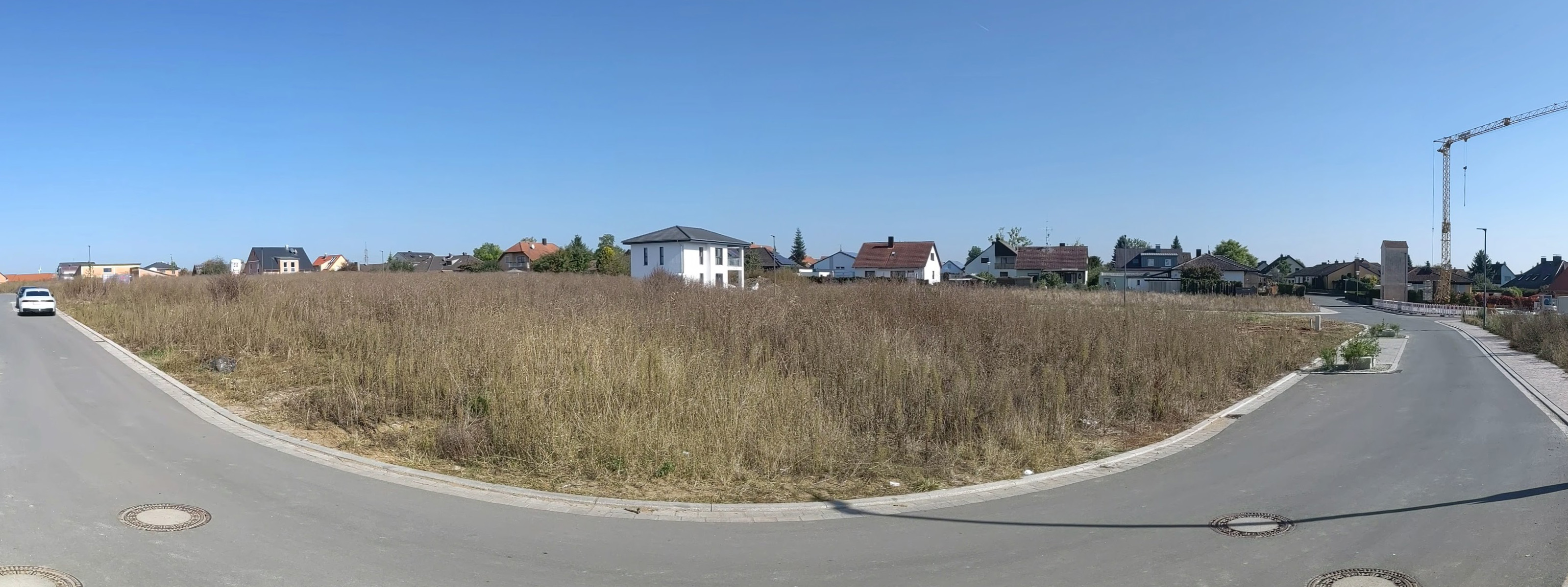 Am Baugebiet angekommen, waren wir überrascht dass nun schon einige Häuser mehr stehen als beim letzten Mal. Die Nachbarn schräg gegenüber, die lange Zeit nur einen Keller hatten, haben nun einen kompletten Rohbau dastehen und zwei Straßen weiter steht nun ein fertiges Haus – wow. Und unser Baugrund? Neben einem Urwald samt Trampelpfad vom Vermesser (hoffen wir zumindest…) hat jemand noch zwei Mülltüten abgelegt – danke dafür!